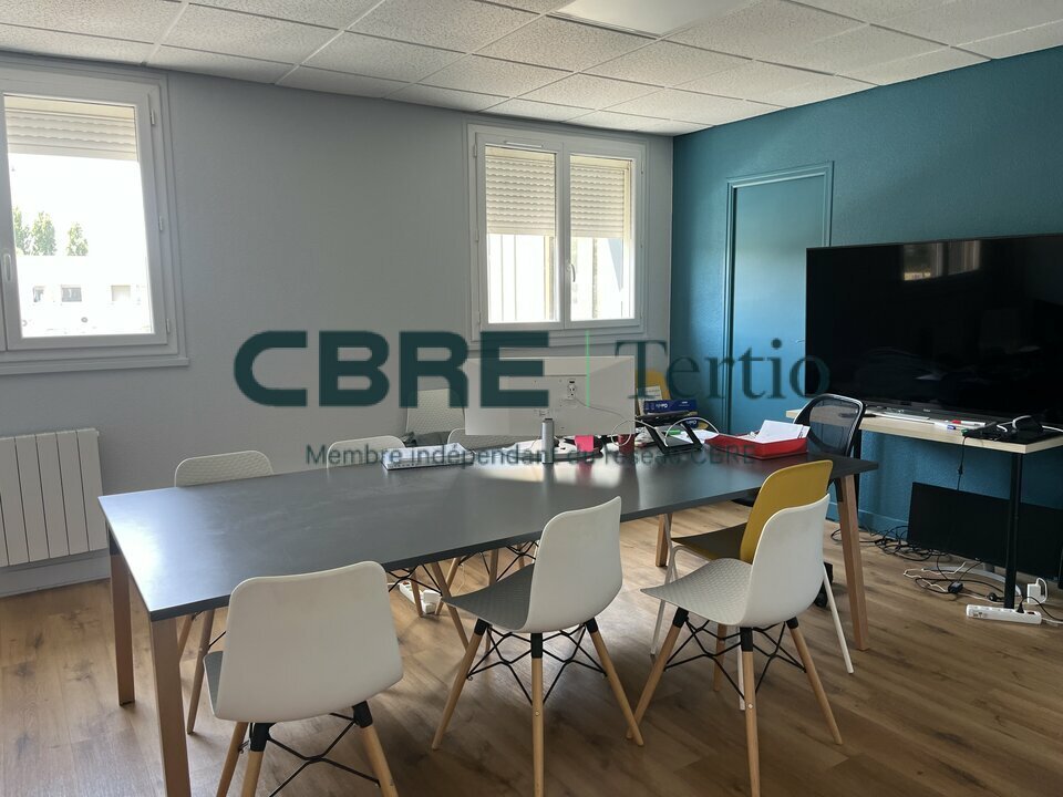 Aux Granges Galand à Saint-Avertin dans un immeuble de bureaux au 1er étage, un plateau de bureaux de 135m² comprenant un espace accueil ou open-space, 5 bureaux, un sanitaire et une kitchenette.