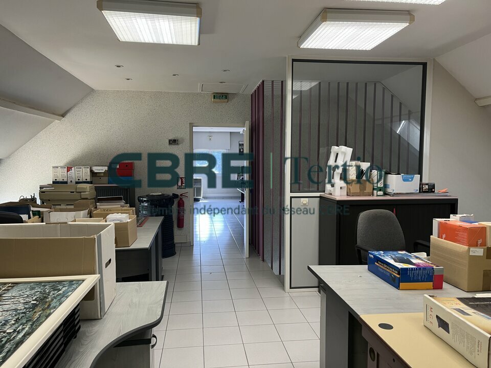 Au rez-de-chaussée, il comprend un hall d’entrée, deux espaces de bureaux de 32 m² et 52 m², une kitchenette et deux WC. À l’étage, un palier dessert deux autres espaces de bureaux, une salle de réunion et un bureau insonorisé.