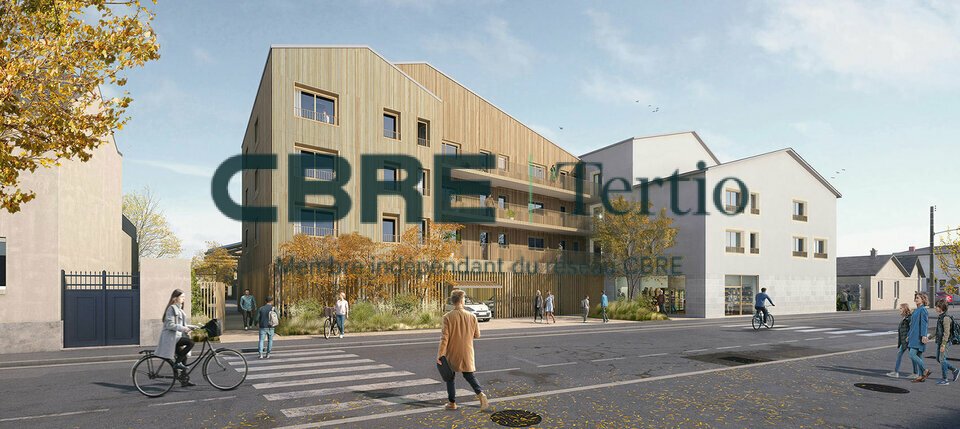 A quelques minutes du centre-ville historique de Tours, en VEFA, 2 cellules commerciales au pied d’un immeuble d’habitation de 39 logements.
