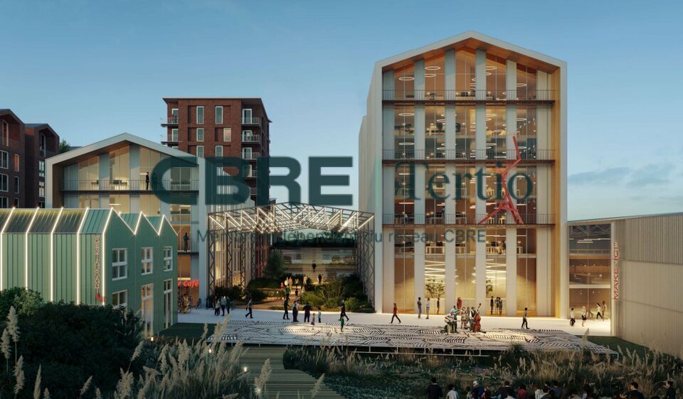 L’immeuble ERP 4ème catégorie (type W) développe 2 098 m² divisibles à partir de 201 m², offrant une grande flexibilité d’aménagement. Ce programme mixte labellisé RE2020 s’intègre dans un ensemble multifonctionnel associant bureaux, logements, hôtel-restaurant, centre médical, espaces artisanaux et résidence étudiante.