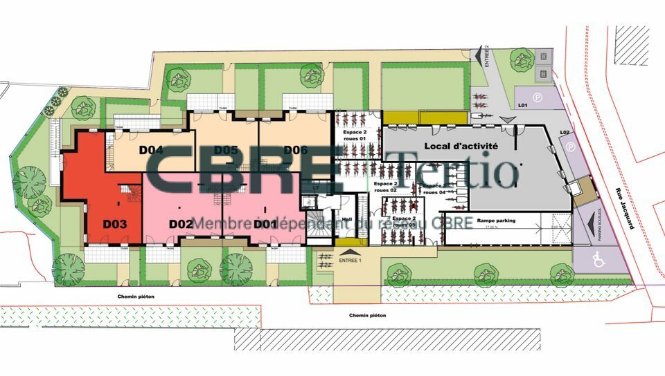Local commercial de 158m² utile avec un jardin privatif de 70m², en pied d’immeuble d’une future résidence,