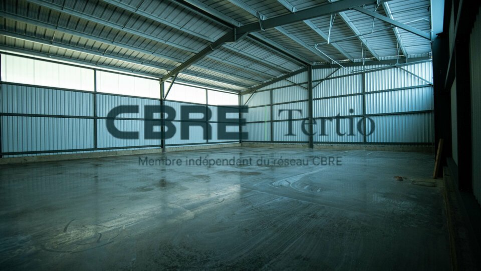 Dalle béton et réseaux (électricité, assainissement et eau potable). Porte sectionnelle de 4×4 et accès piéton Grandes hauteurs intérieures Le site est sécurisée (clôture, vidéo surveillance, portail électrique et parking)
